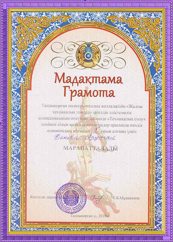 ЖОҒАРЫ ҚАЗАҚ ГУМАНИТАРЛЫҚ-ТЕХНИКАЛЫҚ КОЛЛЕДЖ МЕКЕМЕСІ