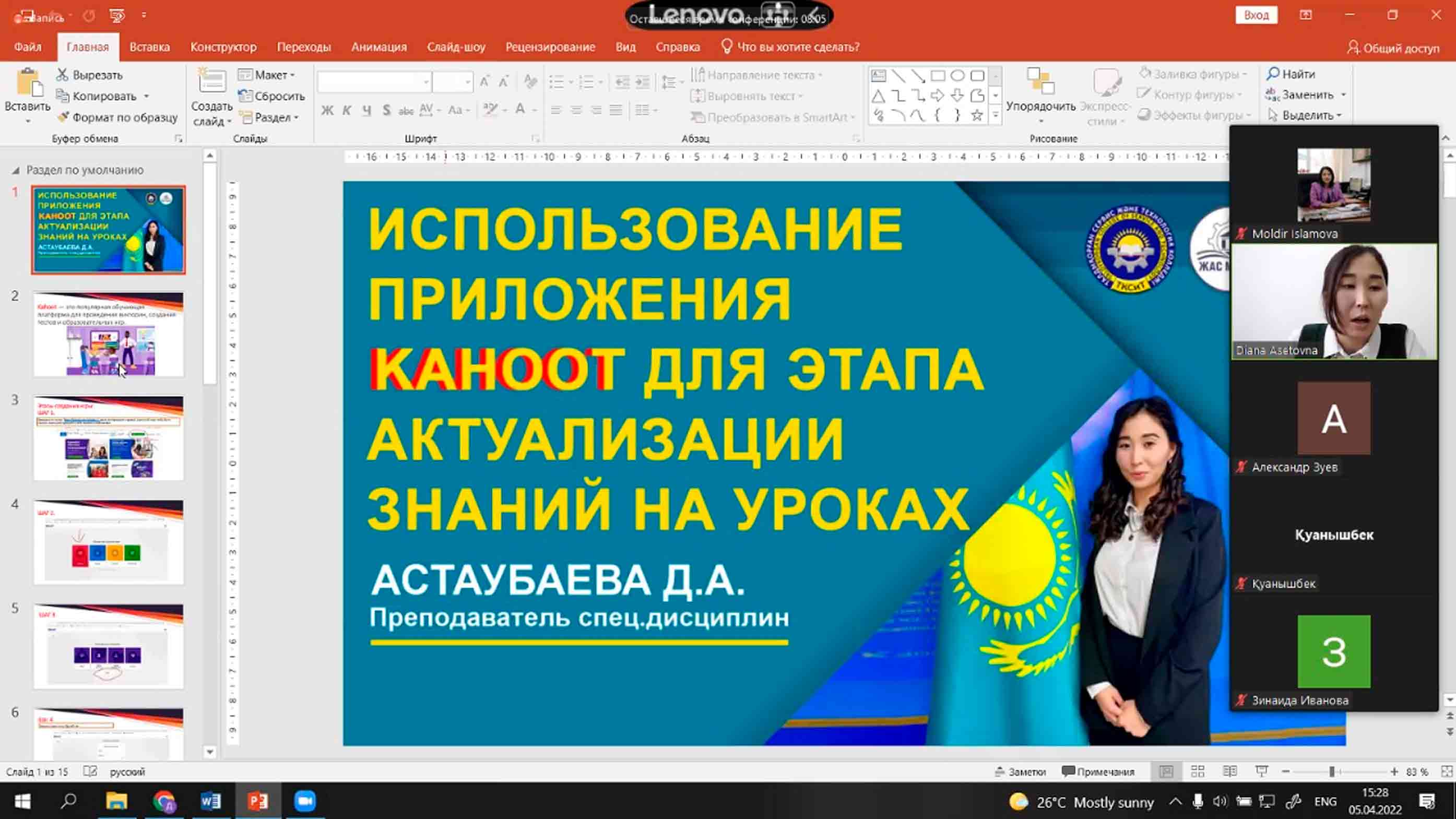 2022 жылдың 5 сәуірінде «Тамақтандыруды ұйымдастыру» мамандығы бойынша құзыреттілік орталығының жұмыс жоспарына сәйкес «Теориялық және өндірістік оқыту сабақтарында оқытудың заманауи әдістері мен IT-технологияларын енгізу» тақырыбында облыстық вебинар өтті. Мақсатты аудитория: арнайы пәндер оқытушылары, 10130300 «Тамақтандыруды ұйымдастыру» мамандығы бойынша өндірістік оқыту шеберлері.