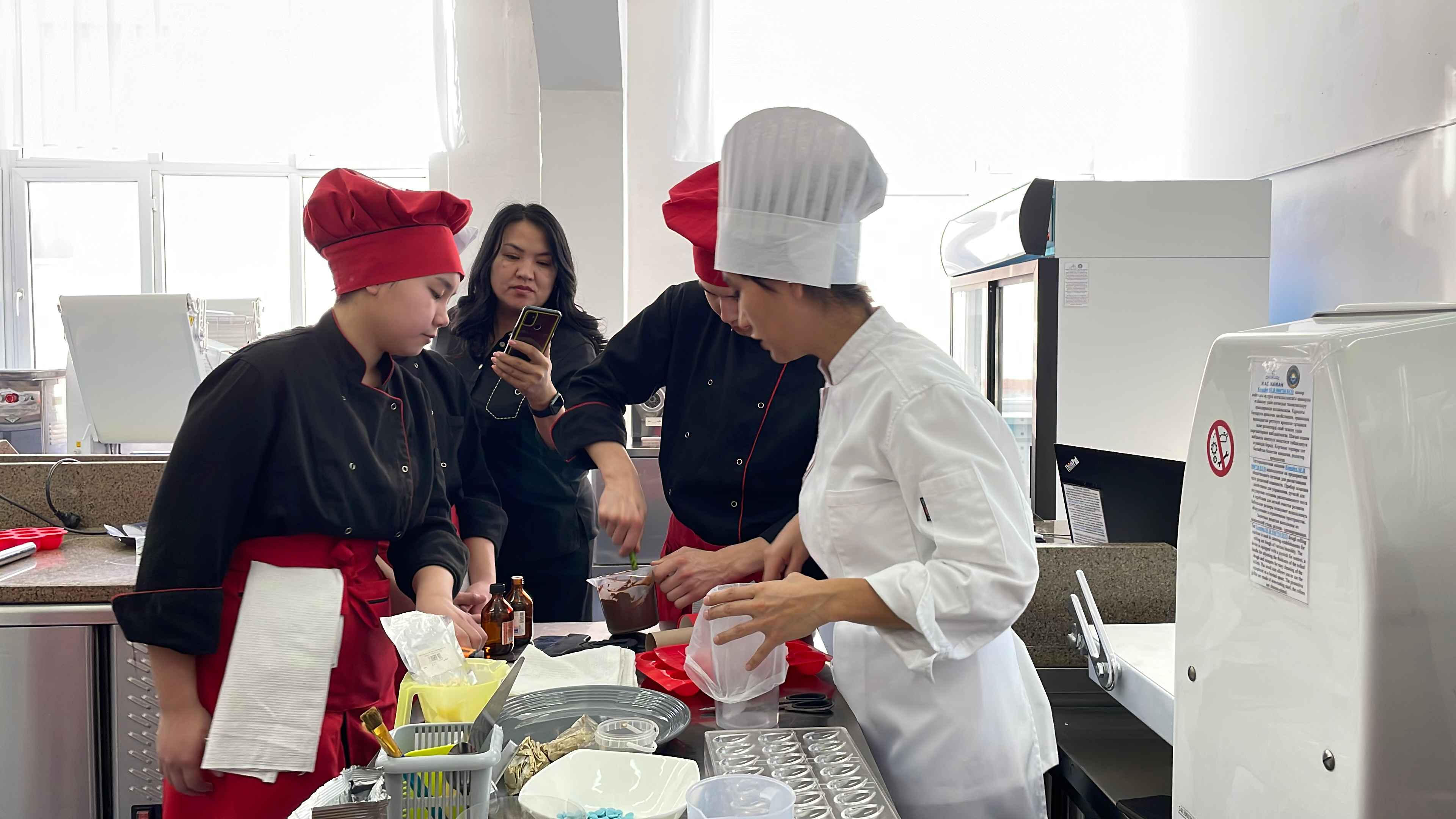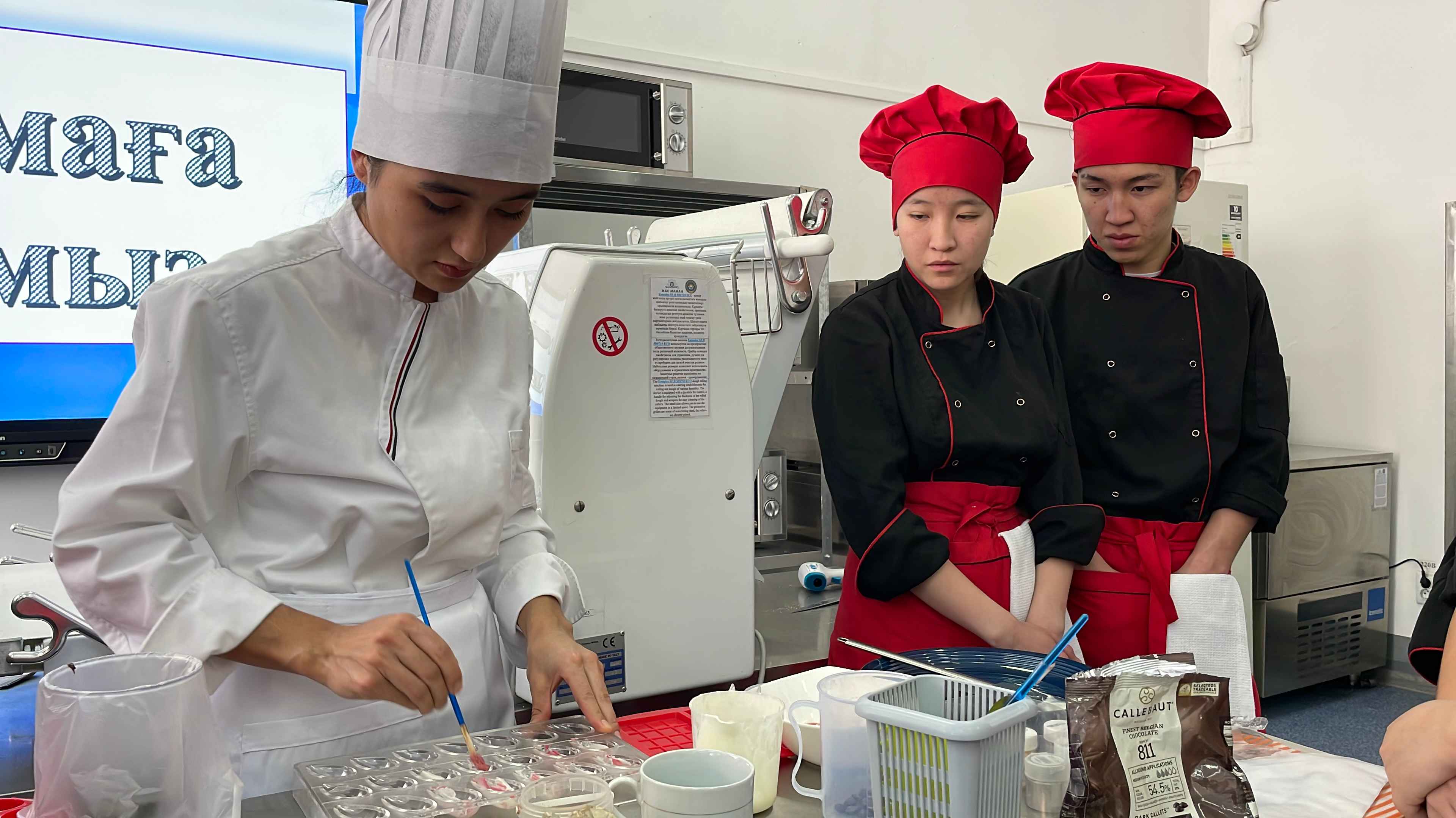Бүгін 28.02.2023 жылы Талдықорған сервис және технология колледжінің өндірістік оқыту шебері А.Б.Сабыржанова "Кондитерлік өнімдерді шоколадпен безендіру" тақырыбында өндірістік оқытудан С32П тобымен ашық сабақ өткізді. Сабақ барысында шоколад температурасын тұрақтандыру көрсетіліп, шоколадтан бұйымдар дайындау тәсілдері үйретілді.