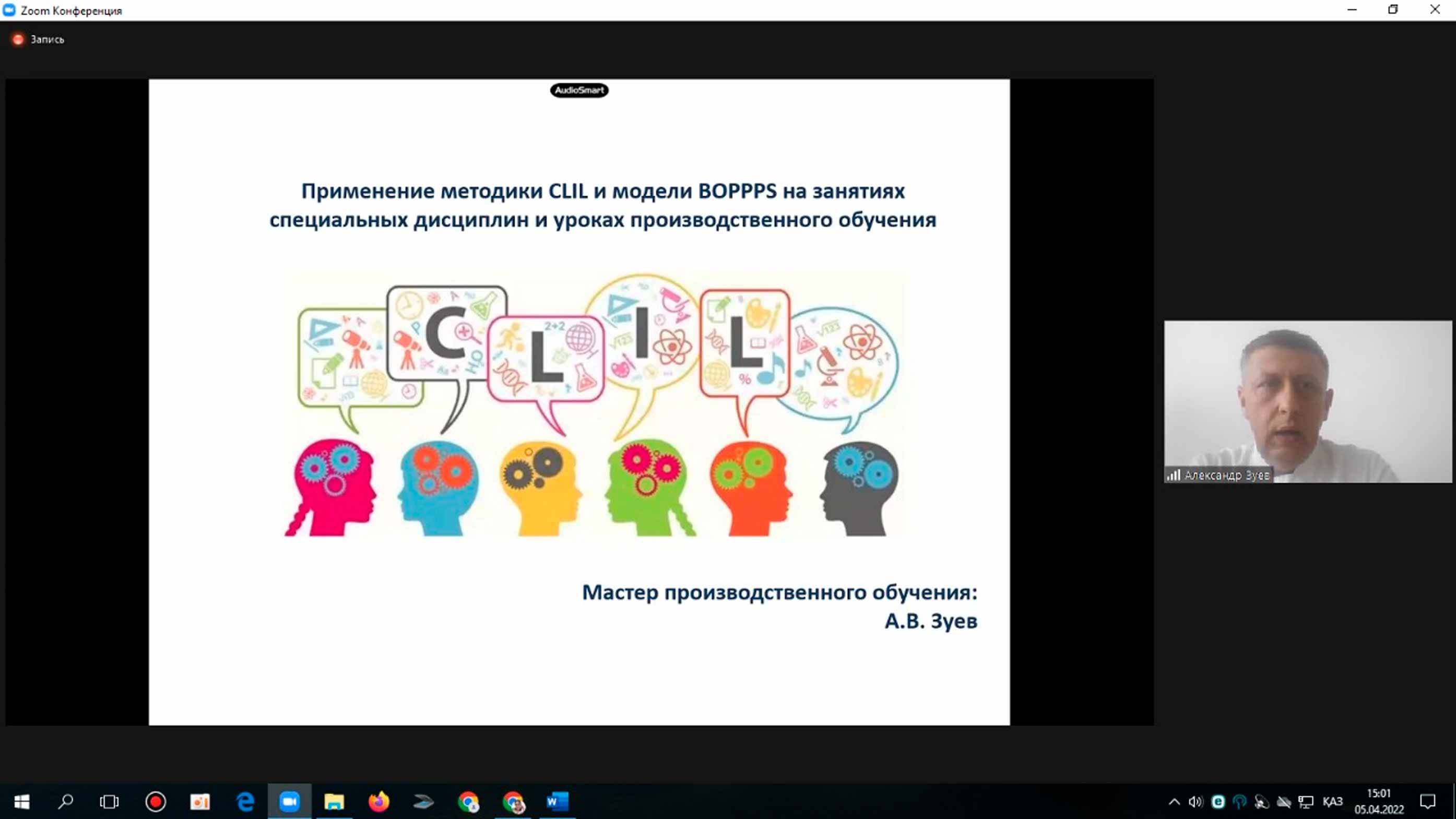 1) Зуев А.В. | Өндірістік оқыту шебері | «Boppps жоспарының құрылымымен CLIL әдістемесі».