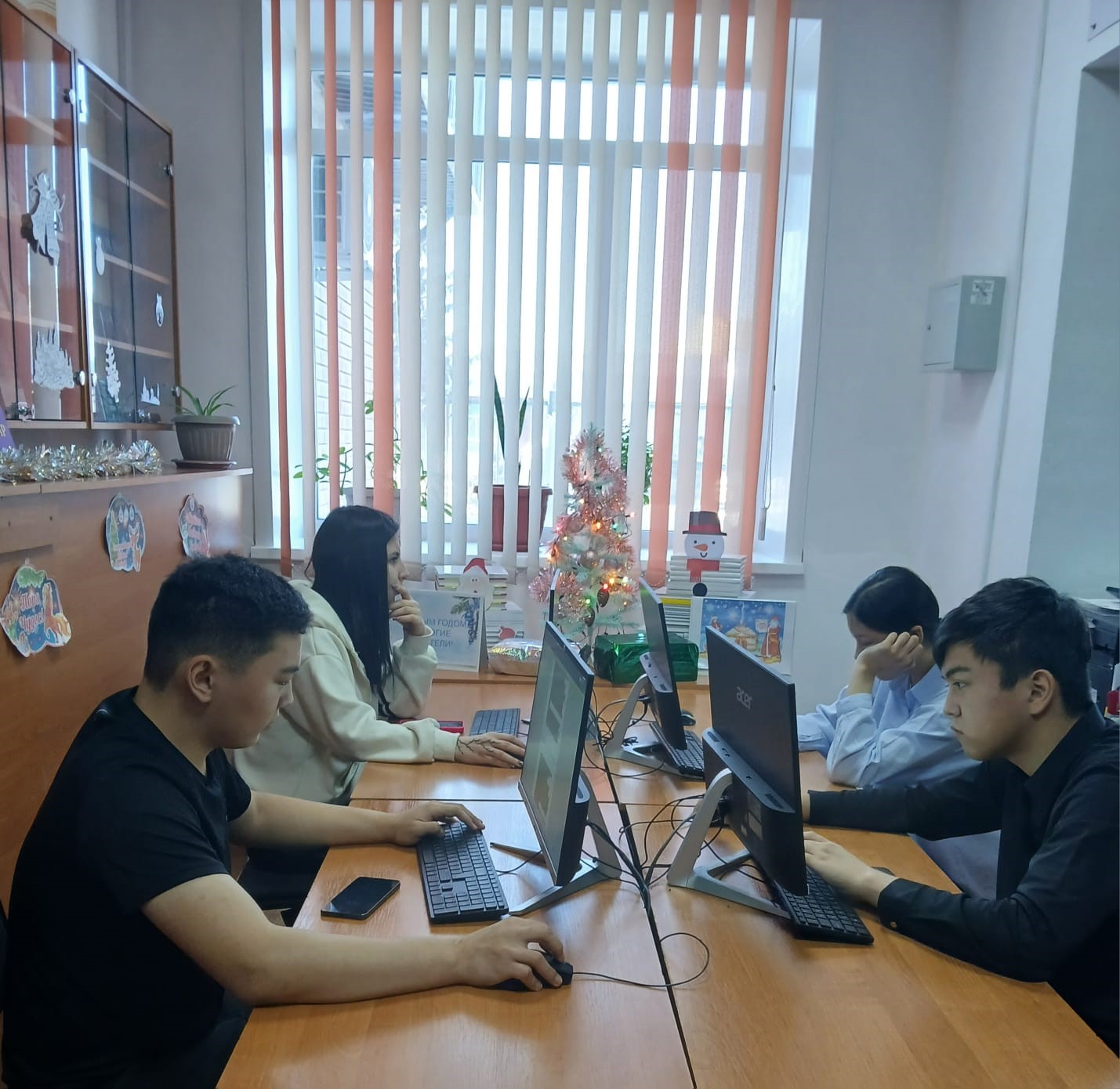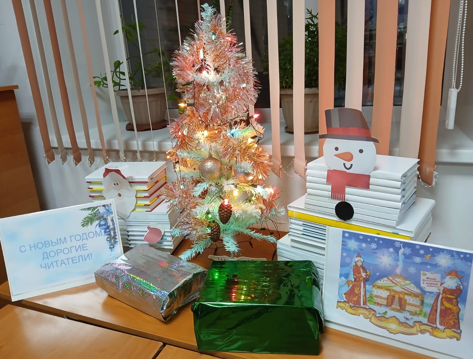 Жаңа жыл қарсаңында "Жоғары Қазақ гуманитарлық-техникалық колледжі" кітапханасының оқу залында оқырмандарды сиқыр, жылулық және қысқы ғажайыптар атмосферасына енуге шақыратын "Жаңа жылдық көңіл-күй" атты мерекелік кітап көрмесі рәсімделді.