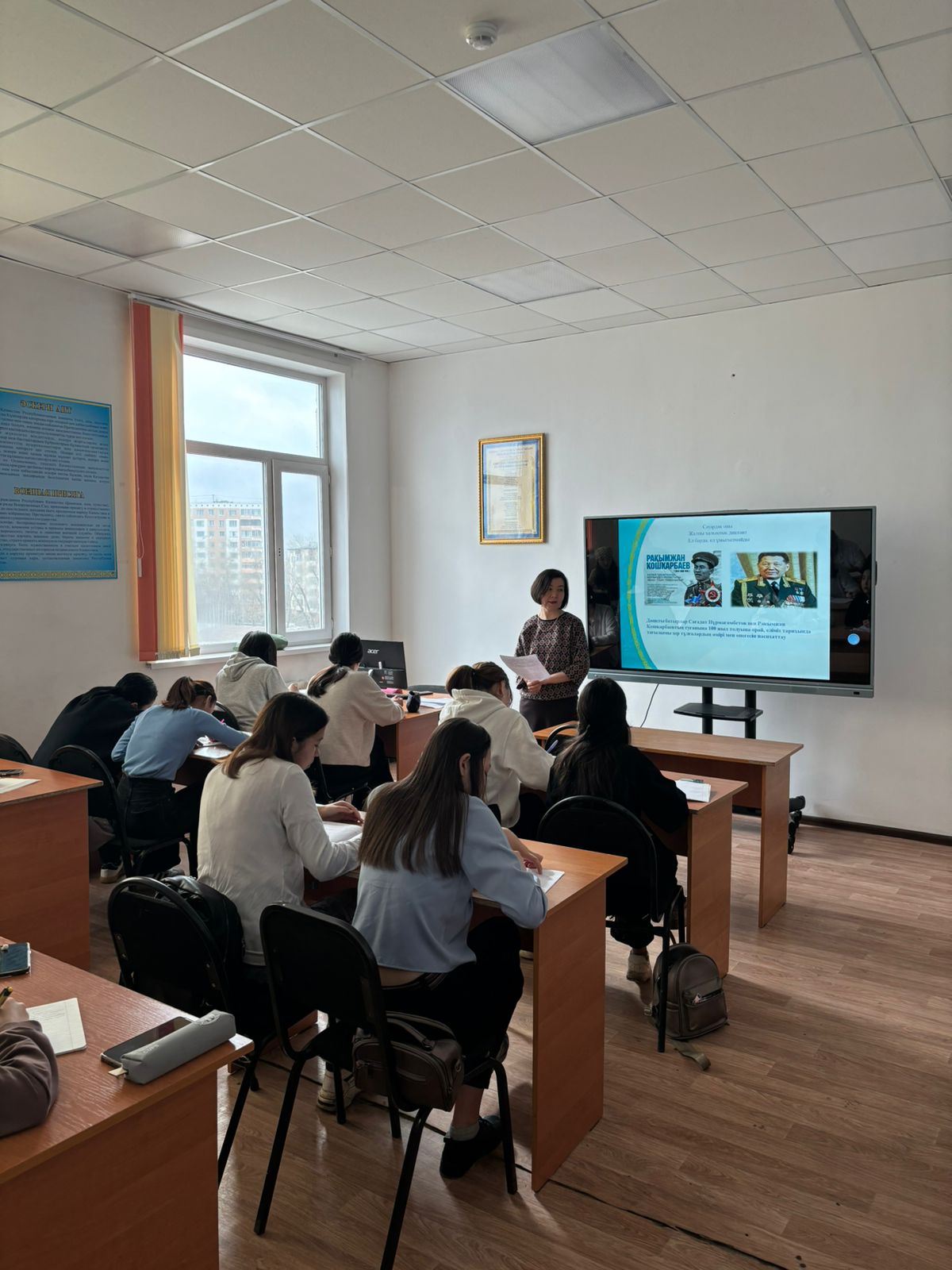 10 апреля 2024 года в 10.00 часов был проведен общенациональный диктант со студентами групп НО-11 и УиА-12, посвященный 100-летию героев Сагадата Нурмагамбетова и Рахимжана Кошкарбаева. Цель мероприятия: чествование лиц, занимающих особое место в истории страны, а также пропаганда жизни и нравственности великих личностей.