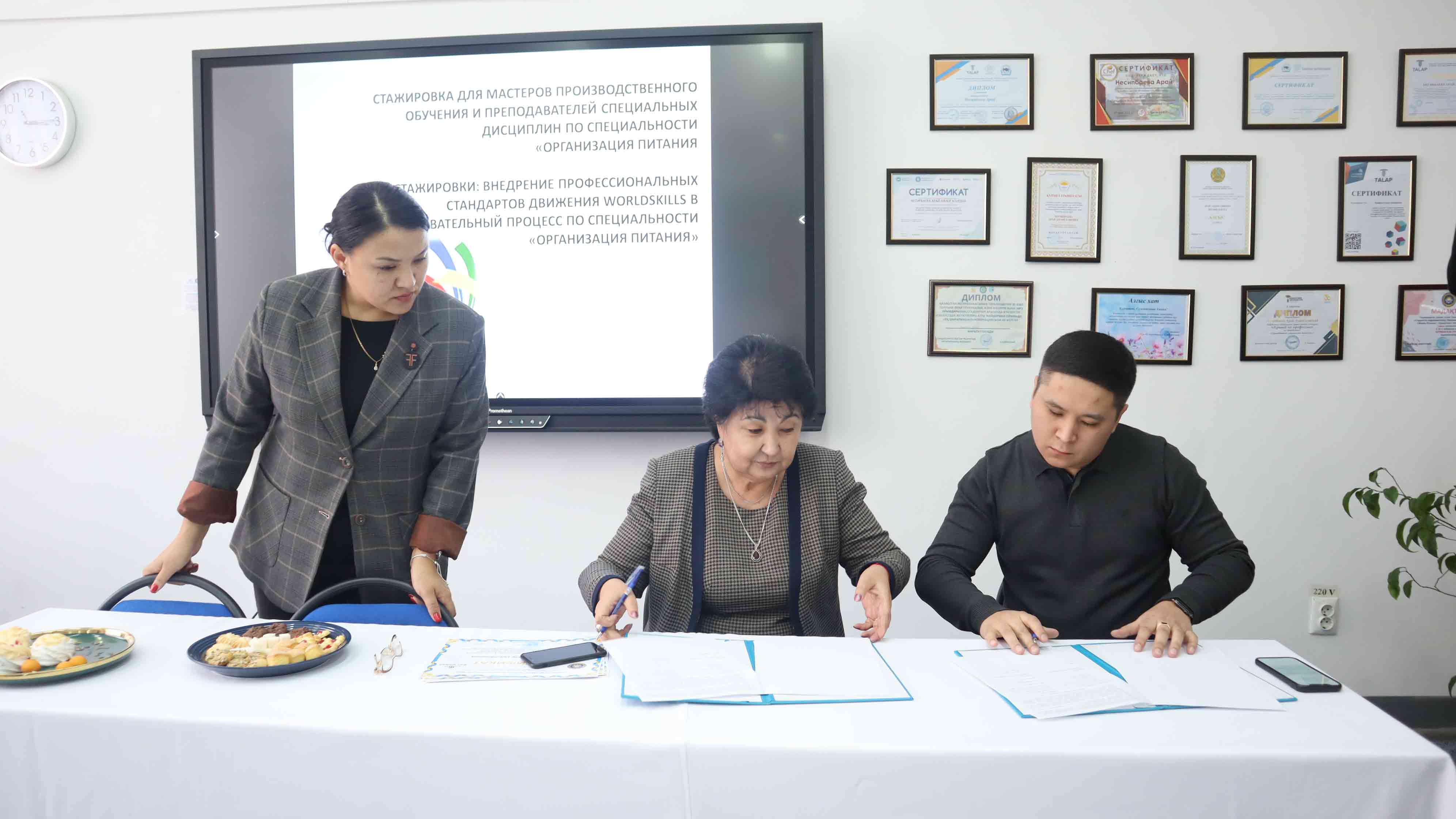 В Талдыкорганском колледже сервиса и технологий с 23 января по 02 февраля 2023 года согласно плану работы Центра компетенций по специальности «Организация питания» прошли областную стажировку мастера производственного обучения сельских колледжей по специальности «Организация питания» на тему: Внедрение профессиональных стандартов движения WorldSkills в образовательный процесс по специальности «Организация питания», в объме 72 часа.