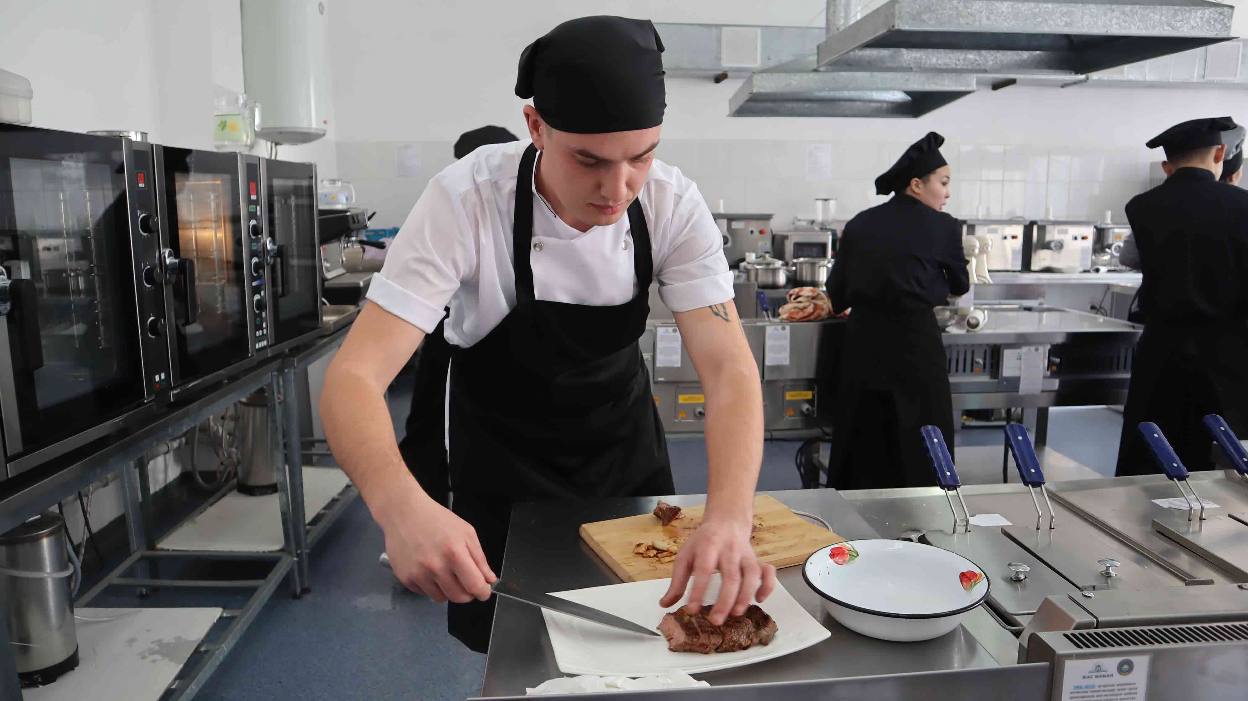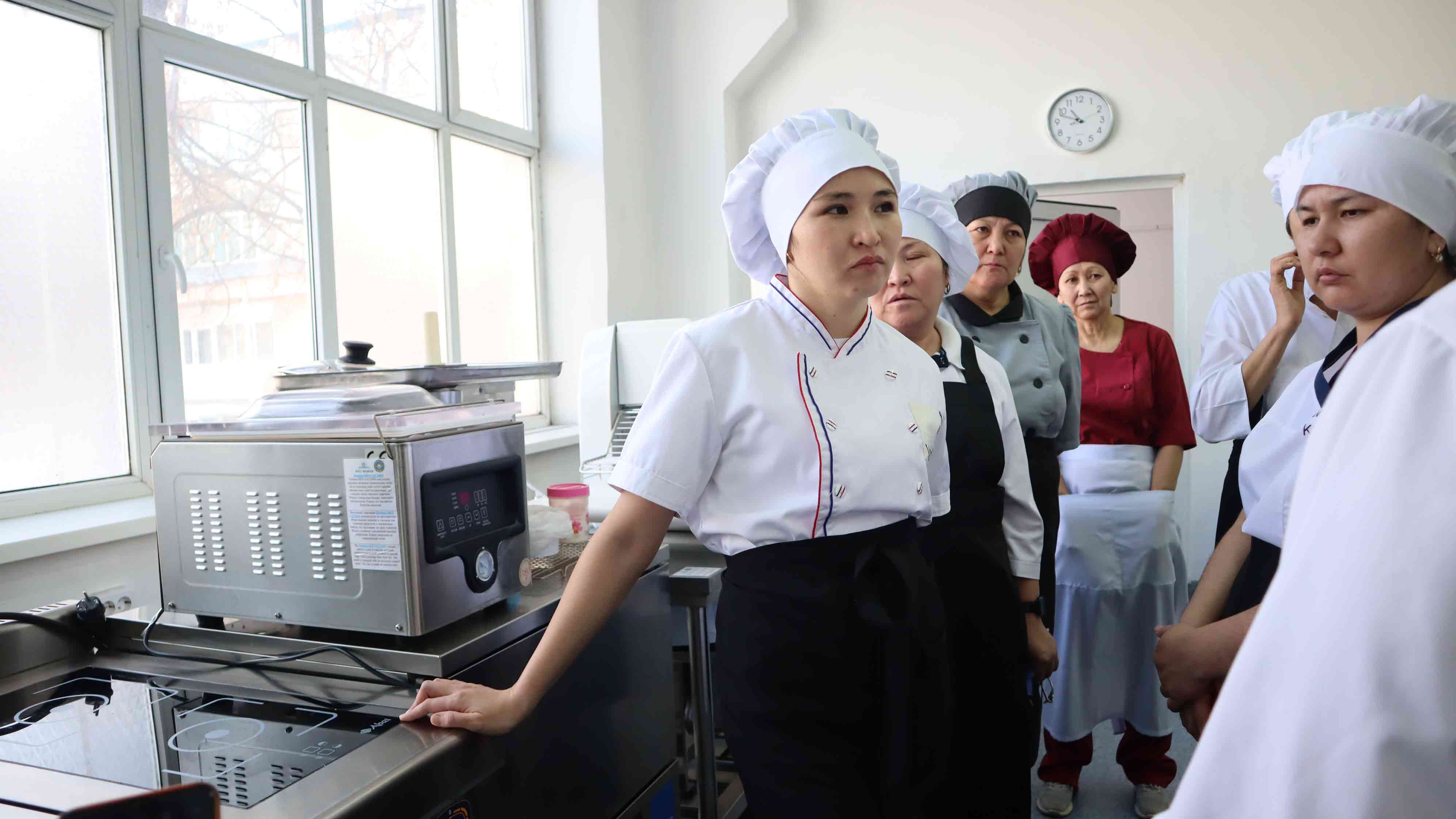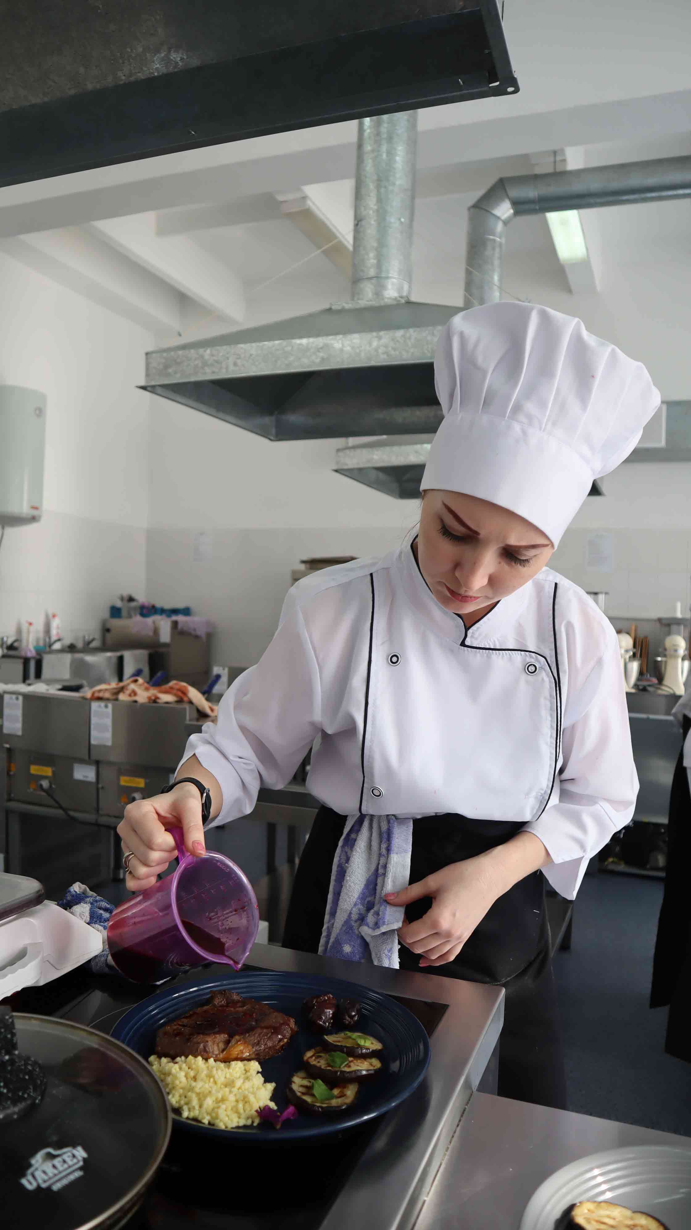 Практическое обучение провела: Калиева С.А. мастер производственного обучения. Было продемонстрировано: приготовление «Антрекота» с двумя гарнирами и соусом «Наршараб». В процессе работы были показаны все стадии технологического приготовления. В процессе комментировался, проговаривался весь технологический процесс приготовления антрекота с гарнирами и соусом «Наршараб». Во время дискуссии с присутствующими мастерами производственного обучения шло профессиональное комментирование всех нюансов технологического процесса, обсуждались методы приготовления, допускаемые ошибки при приготовлении и их исключение.