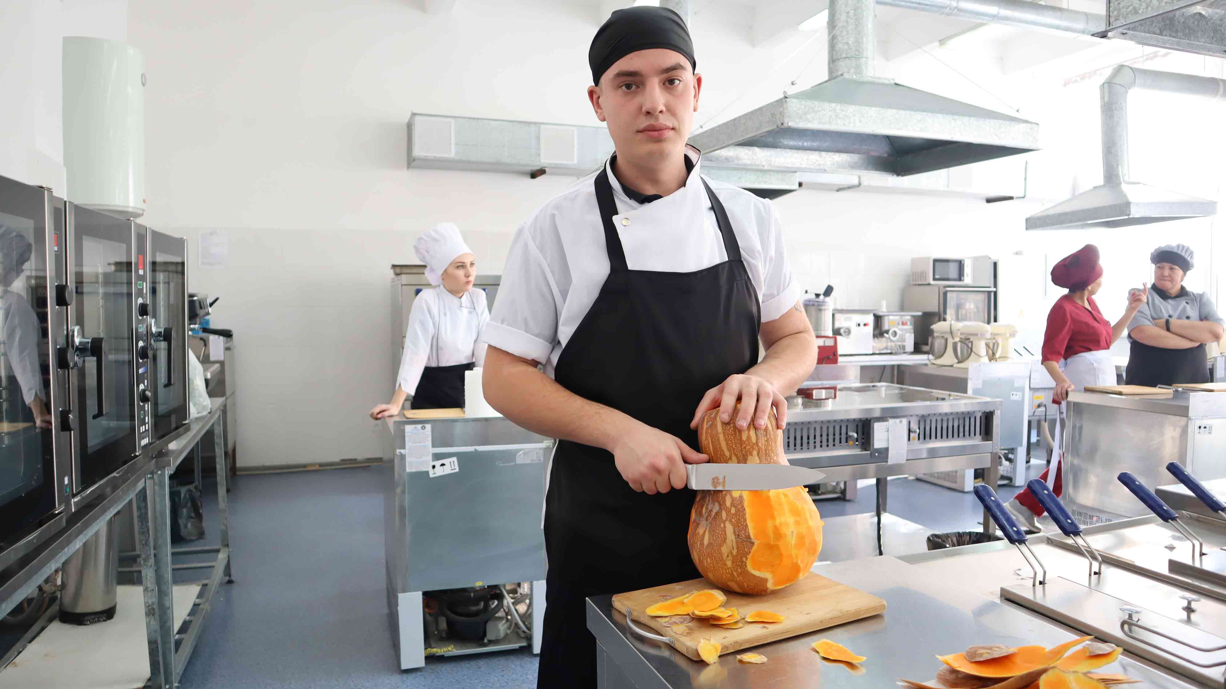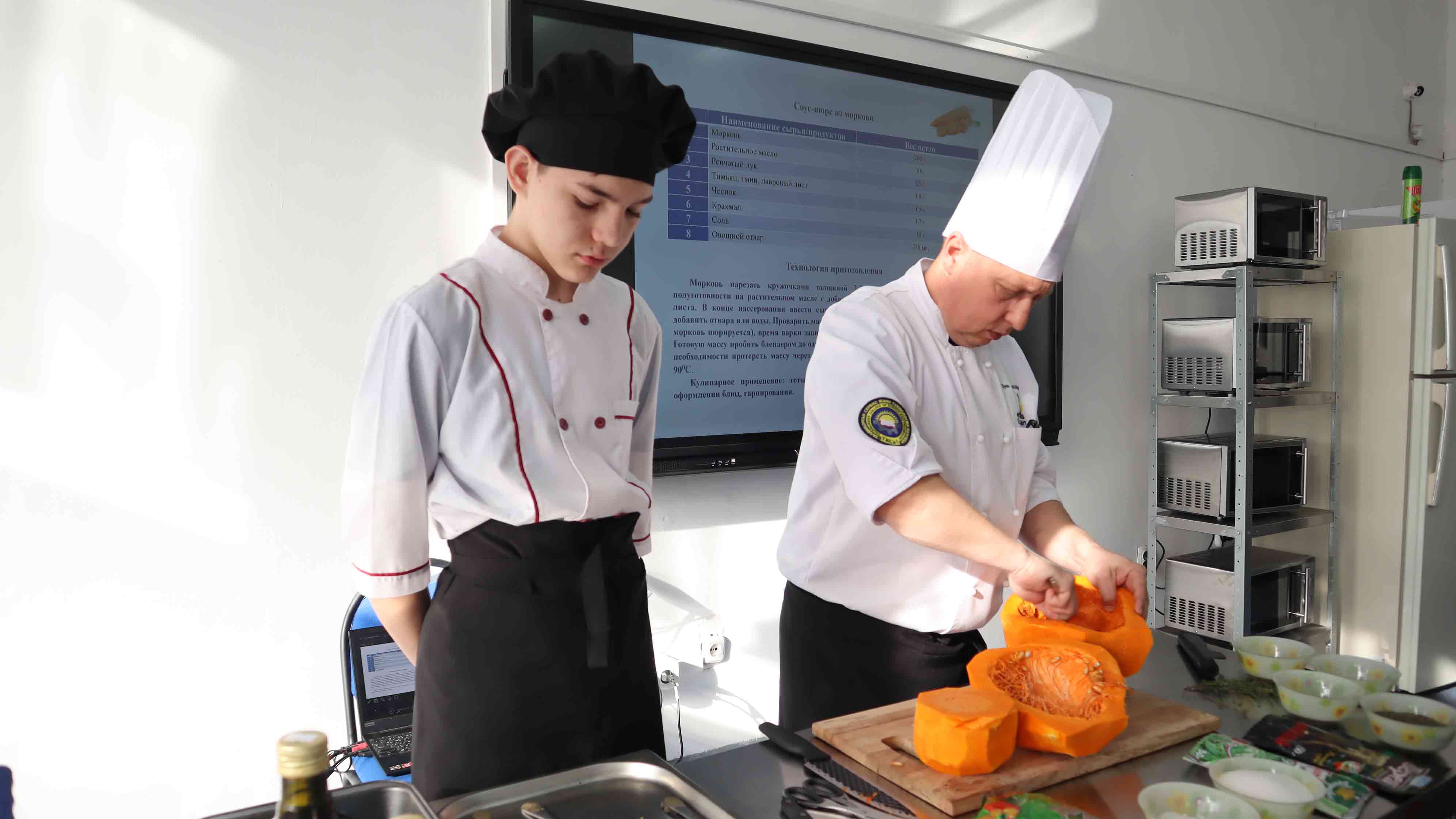 Практическое обучение провёл: Зуев А.В. мастер производственного обучения. Практические задания по приготовлению «Соусов-пюре, ароматных масел, блюд из рыбы со сливочным соусом и сложным гарниром». На первом этапе были приготовлены следующие овощные пюре-соусы: из красной свёклы, моркови, тыквы. Вторым этапом было приготовление ароматного масла из зелени петрушки.
