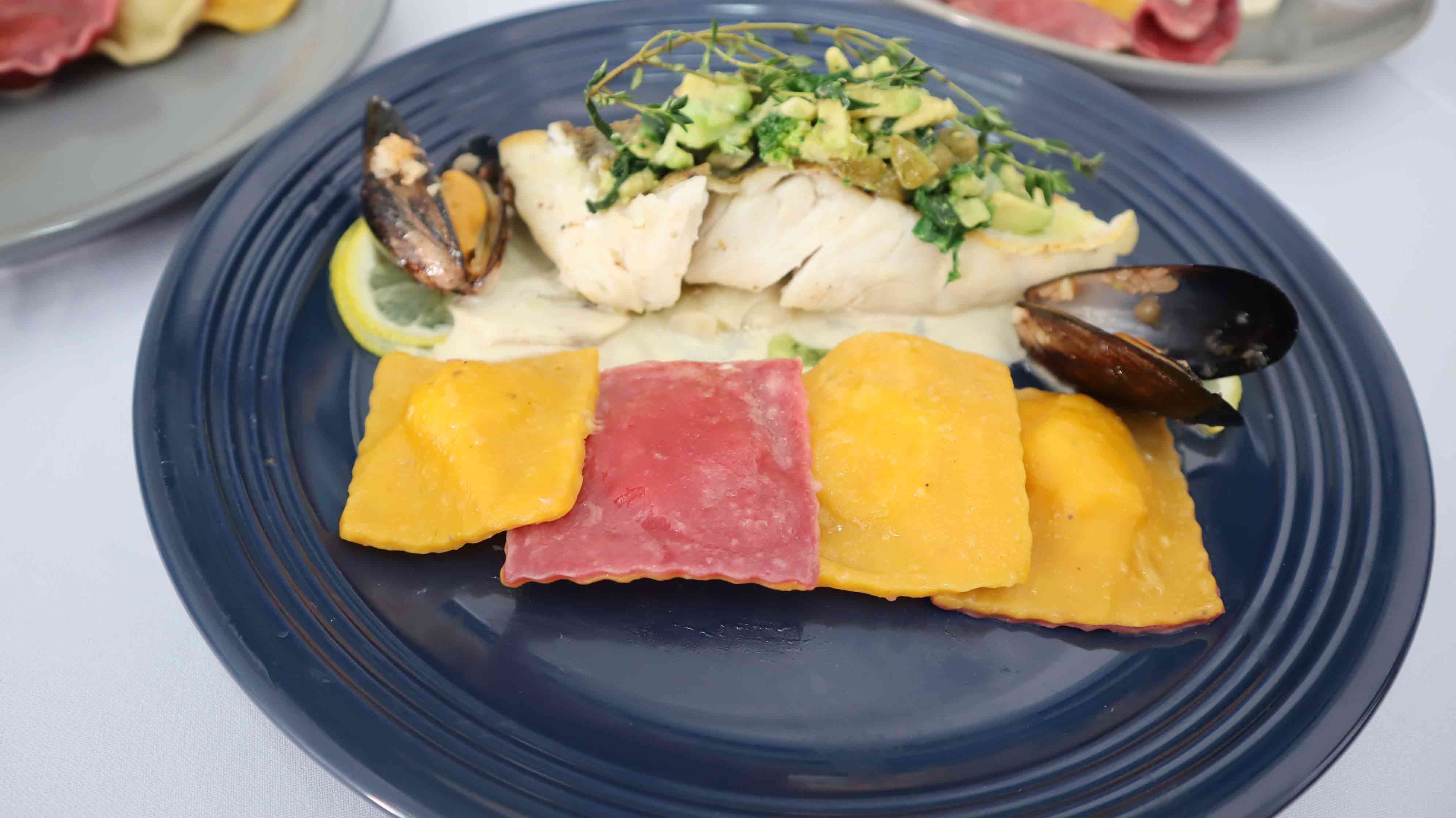 1. гарнир: фаршированные макароны собственного приготовления (равиоли).