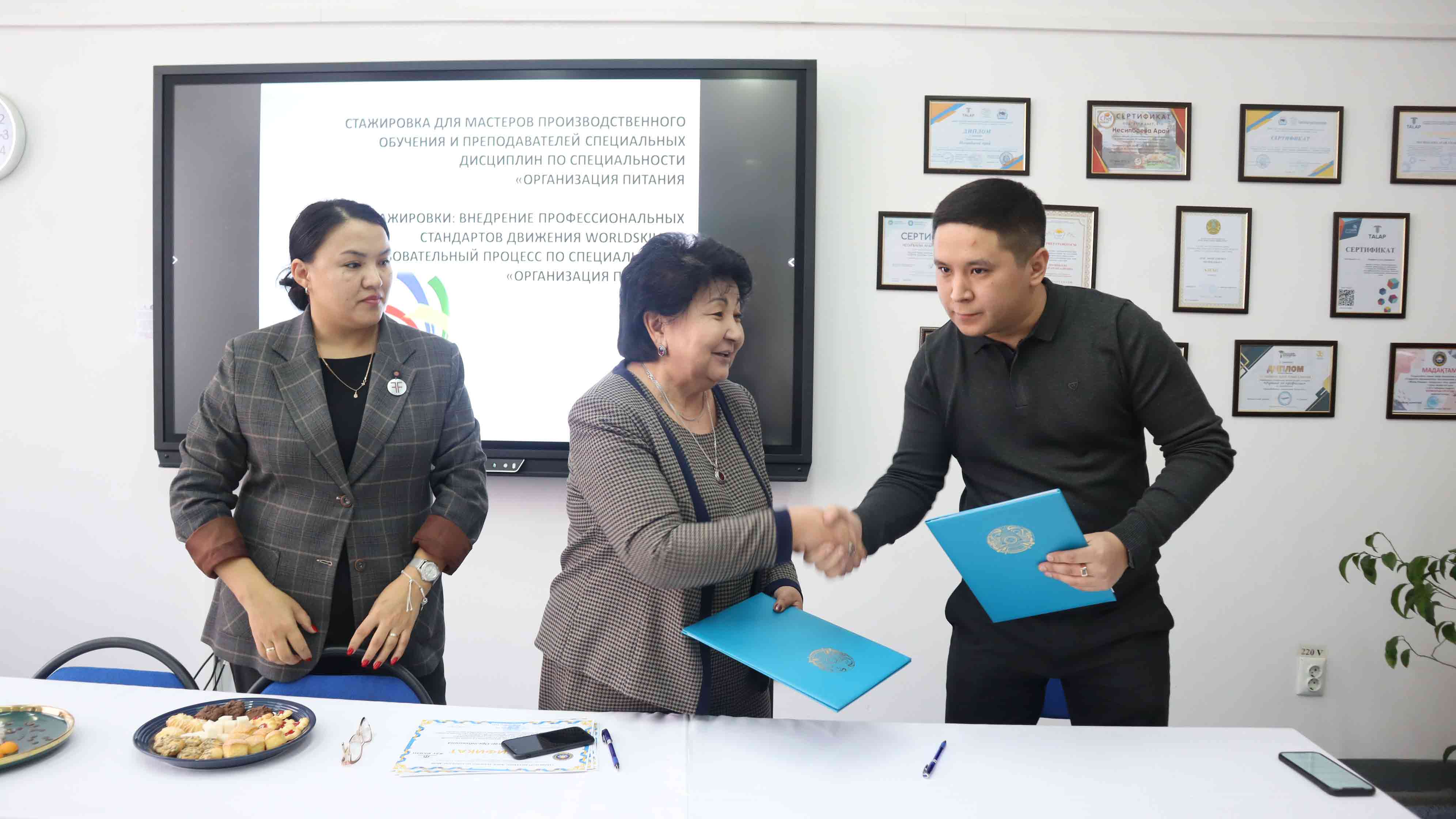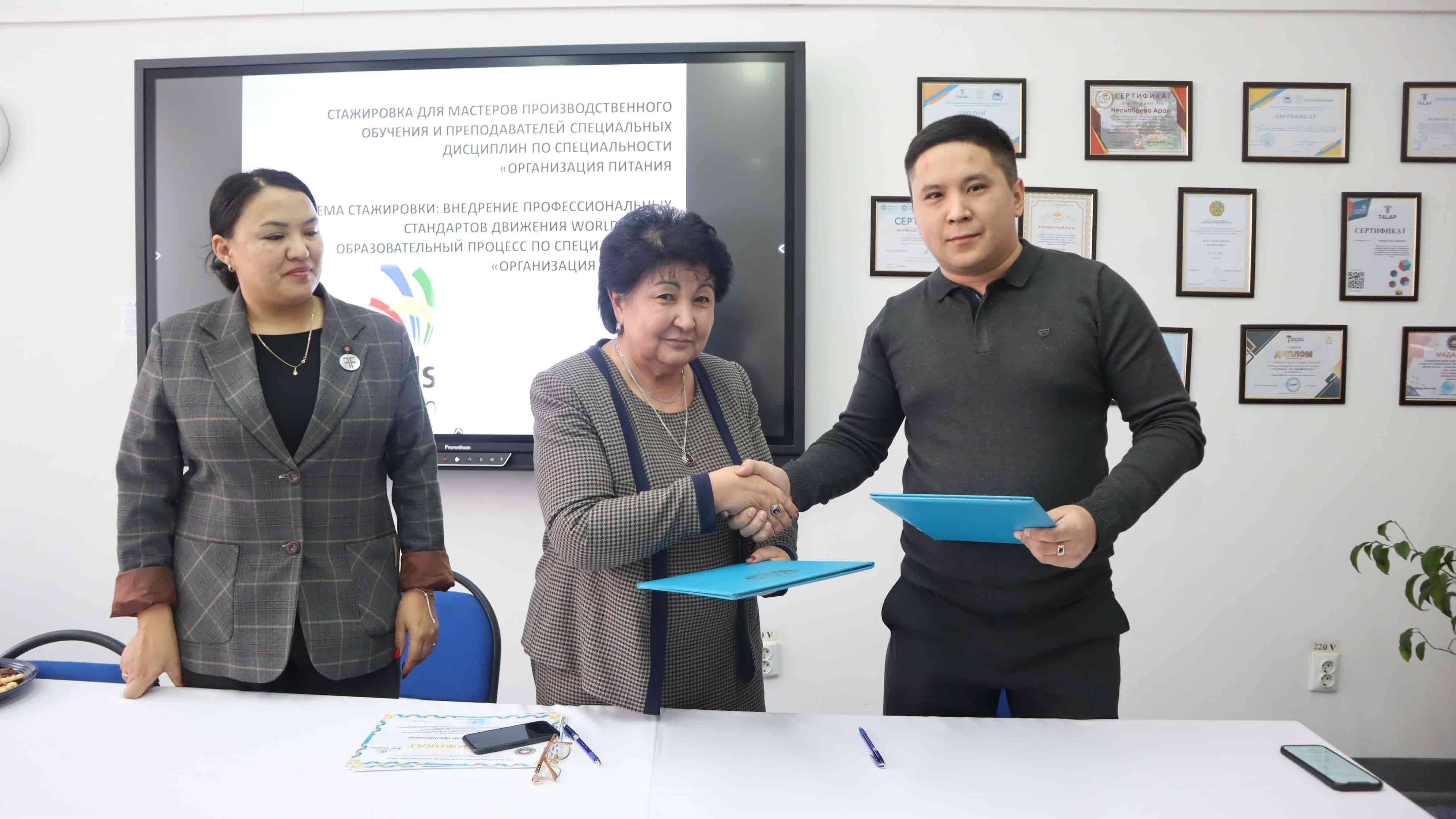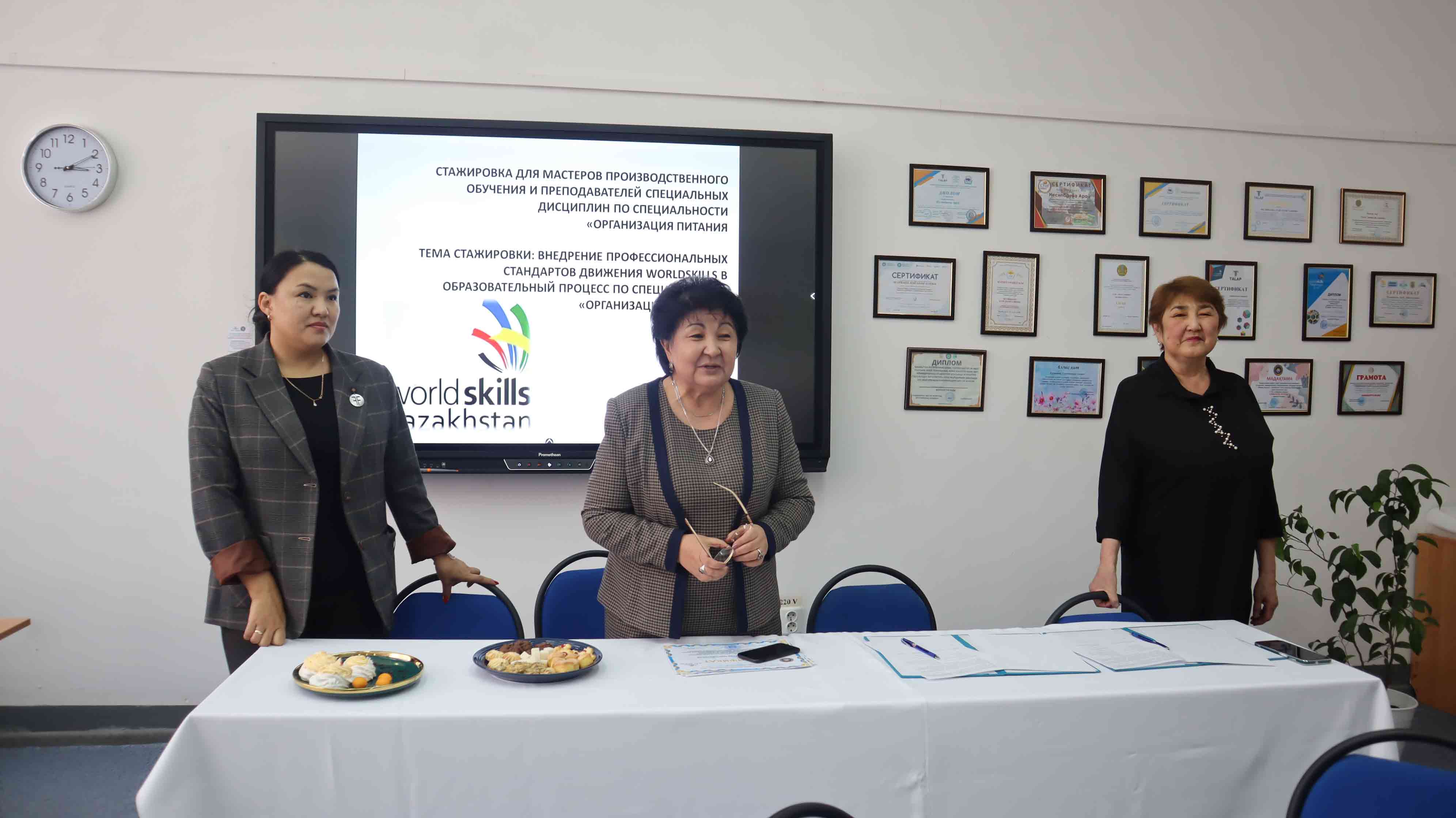 В Талдыкорганском колледже сервиса и технологий с 23 января по 02 февраля 2023 года согласно плану работы Центра компетенций по специальности «Организация питания» прошли областную стажировку мастера производственного обучения сельских колледжей по специальности «Организация питания» на тему: Внедрение профессиональных стандартов движения WorldSkills в образовательный процесс по специальности «Организация питания», в объме 72 часа.
